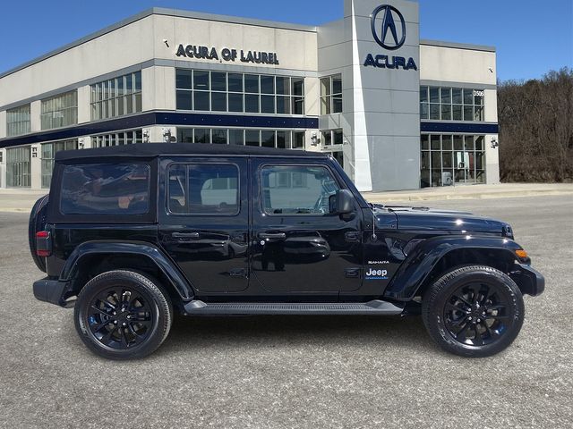 2023 Jeep Wrangler Sahara 4xe BACKUP CAMERA, BLUETOOTH, DISPLAY SCREEN, LEATHER, ONE OWNER, CLEAN CARFAX, Wrangler Sahara 4xe, 4D Sport Utility, 2.0L I4 DOHC, 8-Speed Automatic, 4WD, Black Clearcoat, Dark Saddle/Black Leather.